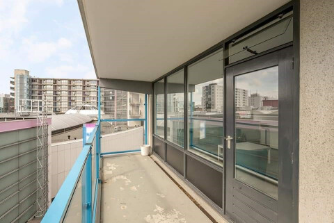 Het balkon, dat een prachtig uitzicht biedt, is toegankelijk via de slaapkamer en/of de woonkamer.