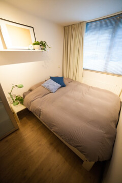 Via een trap naar beneden, kom je in de slaapvertrekken, waarvan er nu 2 ingericht zijn als zijnde slaapkamer en een derde als studeer/werkplek. Maar ook prima te gebruiken als derde slaapkamer.