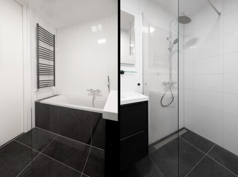 Vanuit de woonkamer heeft u toegang tot het balkon, gelegen op het zuidwesten. Vanuit de hoofdslaapkamer kunt u ook van het prachtige uitzicht over de Maas genieten. De moderne badkamer is voorzien van ligbad, wastafel met opbergmeubel en een inloopdouche.