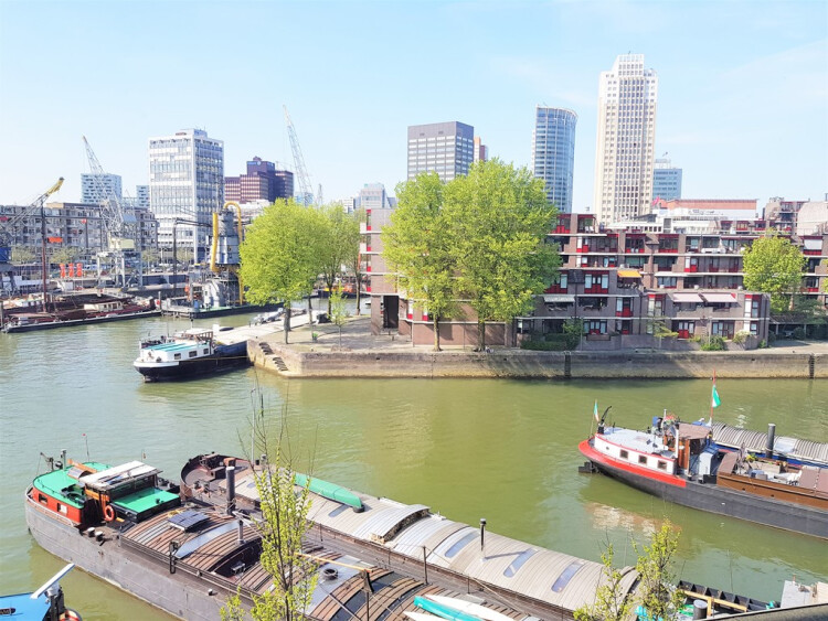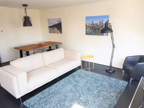 Per mei is dit volledig gemeubileerde 3 kamer stads appartement met zonnig balkon op het zuiden te huur(niet voor studenten)Dit heerlijke appartement met twee ruime slaapkamers is gelegen in hartje centrum Rotterdam. Alle stadse voorzieningen liggen op loopafstand zoals supermarkten, winkels, openbaar vervoer en leuke trendy uitgaan-en eetgelegenheden. Ondanks de centrale ligging in het oude Wijnhavengebied is het in dit complex heerlijk rustig wonen met gezellig uitzicht over één van de havens van Rotterdam. Indeling Begane grond: Entree, brievenbussen, afgesloten hal, liftinstallatie en trappenhuis. 4e Verdieping: Entree, ruime hal met interne berging, videofoon en toilet met fonteintje. De ruime woonkamer is ca. 30 m² is vanwege de vele ramen erg licht en de nieuwe open keuken van ca. 6 m² is voorzien van alle gemakken als combi oven magenetron, vaatwasser en koelvries combinatie. Tevens geeft de keuken toegang tot het zonnige balkon van ca. 6 m². De woonkamer en het balkon geven een gezellig vrij uitzicht over de haven. Slaapkamer I is ca. 12 m² en voorzien van 2 persoonsbed en ruime kledingkast. (Slaap)kamer II is ca. 9 m² en momenteel ingericht als werkkamer met bureau.De nette NIEUWE badkamer voorzien van douche, wastafel met meubel en tevens voorzien van wasmachine en droger. - Volledig nieuw sanitair en voorzien van alle gemakken.