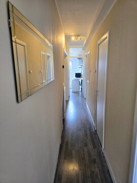 Via de gezamenlijke entree bereik je de woning. Bij binnenkomst kom je in de hal, die toegang biedt tot de verschillende vertrekken.