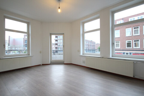 Dit ruime 2-kamer appartement is gelegen op de 3e verdieping van een prachtig hoekpand. Het appartement heeft een ruime woonkamer met veel lichtinval. De woonkamer heeft op de hoek ook een klein balkon. Het appartement heeft een half open keuken en een ruime slaapkamer. De badkamer heeft een douche en wastafel en is een separaat toilet.