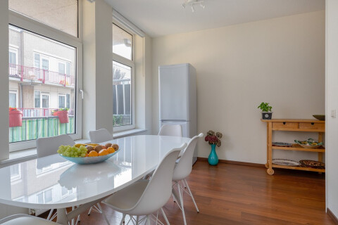 Deze goed gelegen gestoffeerde 3-laagse bovenwoning heeft 3 ruime slaapkamers, een moderne woonkeuken, ruime badkamer en twee balkons gelegen aan het trendy Deliplein op Katendrecht.