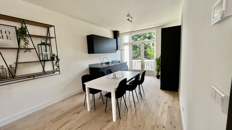 High-end renovated apartment with modern and luxurious amenities and a terrace. This bright apartment features beautiful wooden flooring, an open black design kitchen, two bedrooms, a luxurious bathroom, brand new furnishing and nice balcony! Ideally located within walking distance of the shopping street and the Kralingse Bos (forest of Rotterdam).