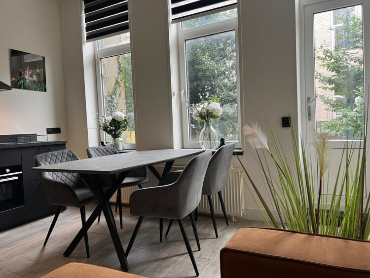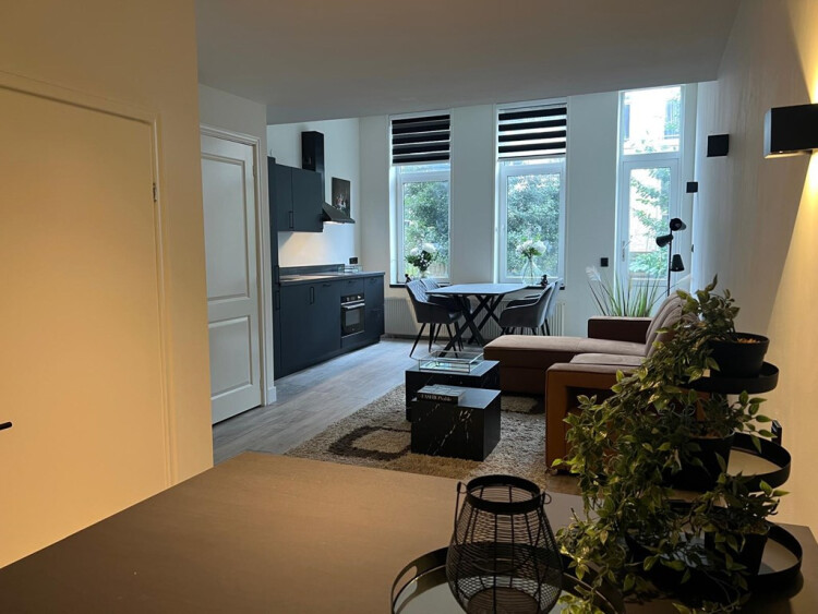 High-end and fully renovated ground floor apartment with modern and luxurious amenities and a garden. This bright apartment features beautiful wooden flooring, an open black design kitchen, one bedroom, a luxurious bathroom, brand new furnishing and sunny garden! Ideally located within walking distance of the shopping street and the Kralingse Bos (forest of Rotterdam).