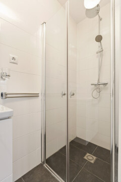 This beautiful apartment is situated at the second floor at the back. The apartment has a livingroom with open kitchen which is equipped with a fridge, combi oven/microwave and a stove. There is a seperate bedroom and a bathroom with shower and sink. There is a seperate toilet. Apartment is equipped with a beautiful floor and windowblinds.