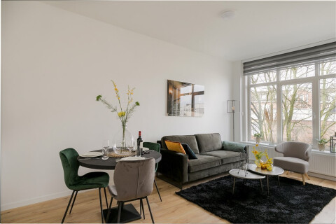 Beautiful new furnished 2-room apartment of approx. 35m2 located on the Middellandplein available immediately for € 825,- exclusive.