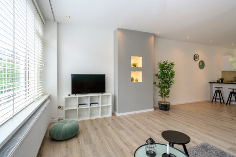 The apartment has been renovated back in 2019 with a new bathroom added in 2021 (note that the pictures currently show the old bathroom). In addition, the entire apartment is newly furnished. Our interior designer has even taken care of the small details like towels, linen, kitchen utensils. The apartment has a lovely modern design and decoration. This way the place is fully ready should you choose to make it your next home.
