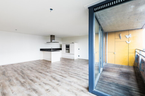 Gemeenschappelijk entree, toegang tot de lift, entreehal naar woning, overloop, rechts de twee slaapkamers, aparte zwevend toilet, voorzien van fontein en wasbak. Ruime woonkamer met open keuken voorzien van luxe inbouwapparatuur zoals een inbouw koffiezetapparaat, vaatwasser, combi magnetron, 5-pits inductiekookplaat en afzuigkap, een zwart natuurstenen blad. Grenzend en overdekt balkon van ca 4m2 en uitzicht over de Nieuwe Maas, Brienenoordbrug en het Eiland van Brienenoord. Badkamer voorzien van douche, ligbad en wasbak. Master bedroom voorzien van inbouw kledingkast.