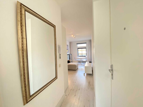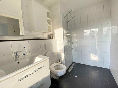 Entree/hal. Lichte sfeervolle woonkamer. Geheel betegelde badkamer, welke is voorzien van een inloopdouche, wandcloset en badmeubel. Halfopen keuken in wandopstelling en voorzien van keramische kookplaat, afzuigschouw, combi oven en koelkastje met vriesvak, en vaatwasser. Tevens aanwezig is een wasmachine.
