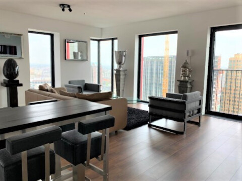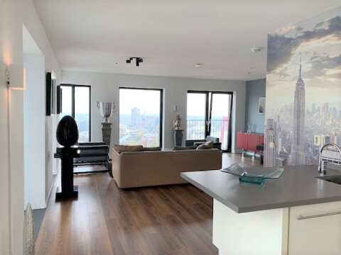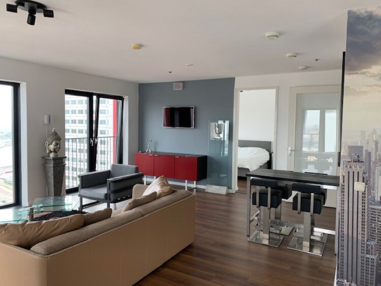 Vanuit werkelijk iedere hoek is het uitzicht waanzinnig van dit gemeubileerde 3 kamer appartement gelegen op de 23ste verdieping!