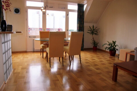 De woonkamer heeft een ruime opzet met open keuken en vanuit daar toegang tot het balkon gelegen op het Zuiden. De keuken is van veel gemakken voorzien en beschikt over veel opbergruimte.