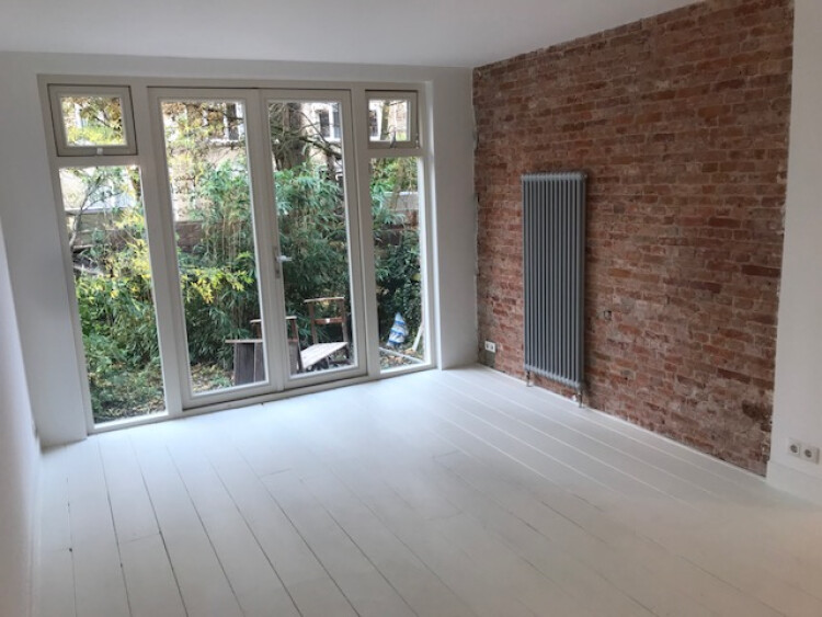 Net verbouwd luxe split-level appartement van 100m2 + kelder met een grote tuin.